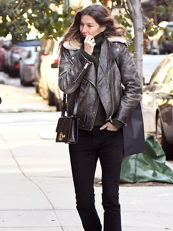 Gisele Bündchen Black Leather Biker Jacket